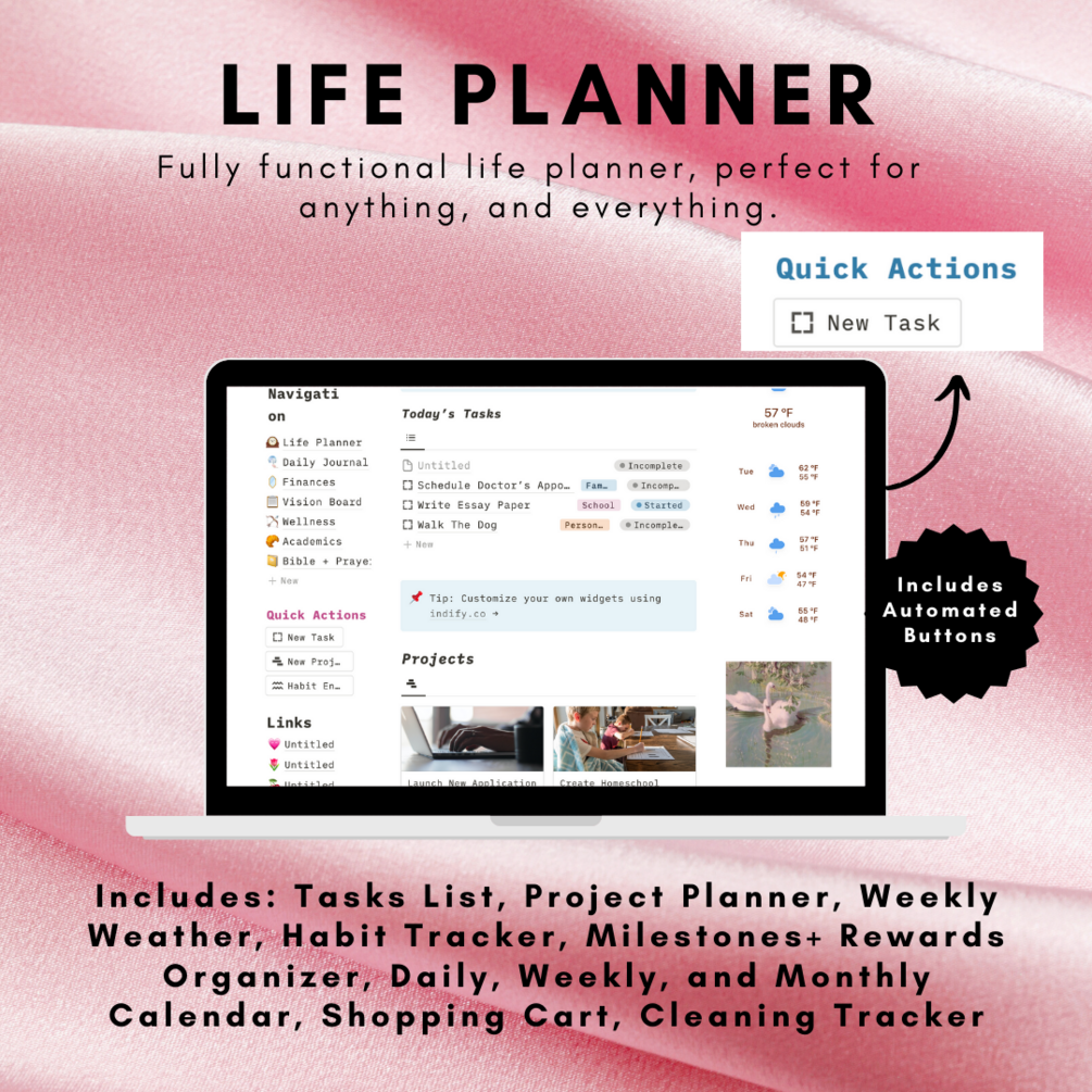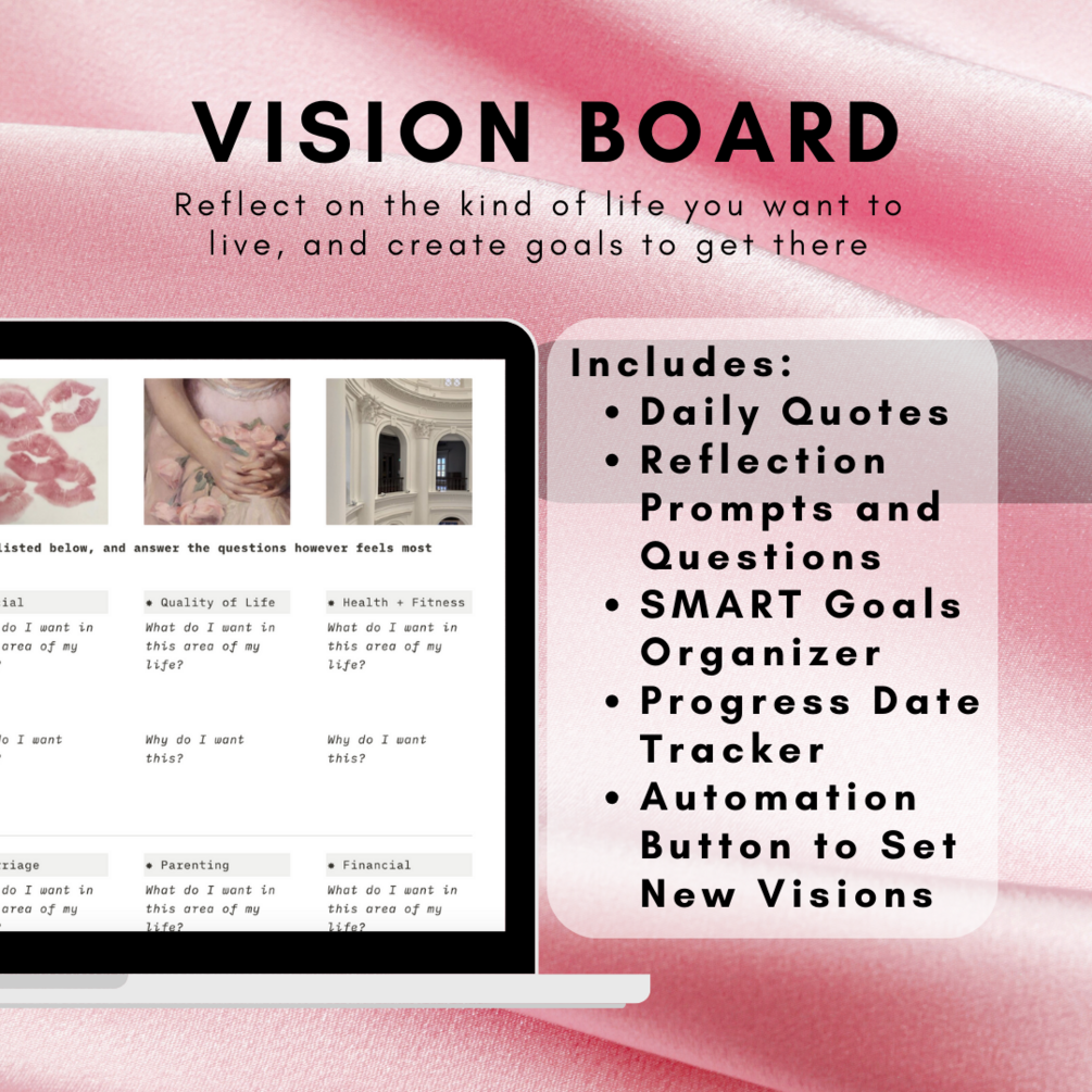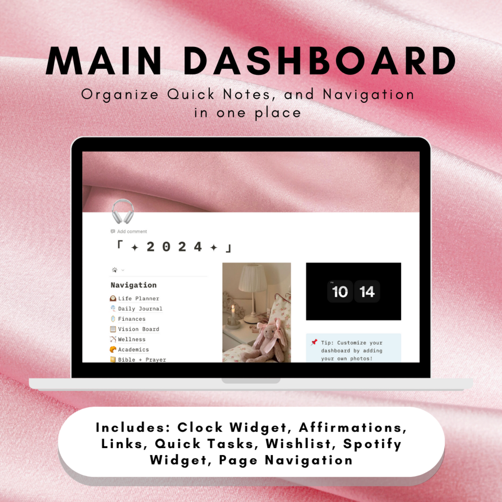 With this Notion Digital Planner, you can now embrace an organized and elevated lifestyle in style. Streamline your personal, professional, and spiritual goals effortlessly, all within a single digital planner. Elevate the way you plan, live, and thrive with the Coquette-themed Notion Digital Planner today.